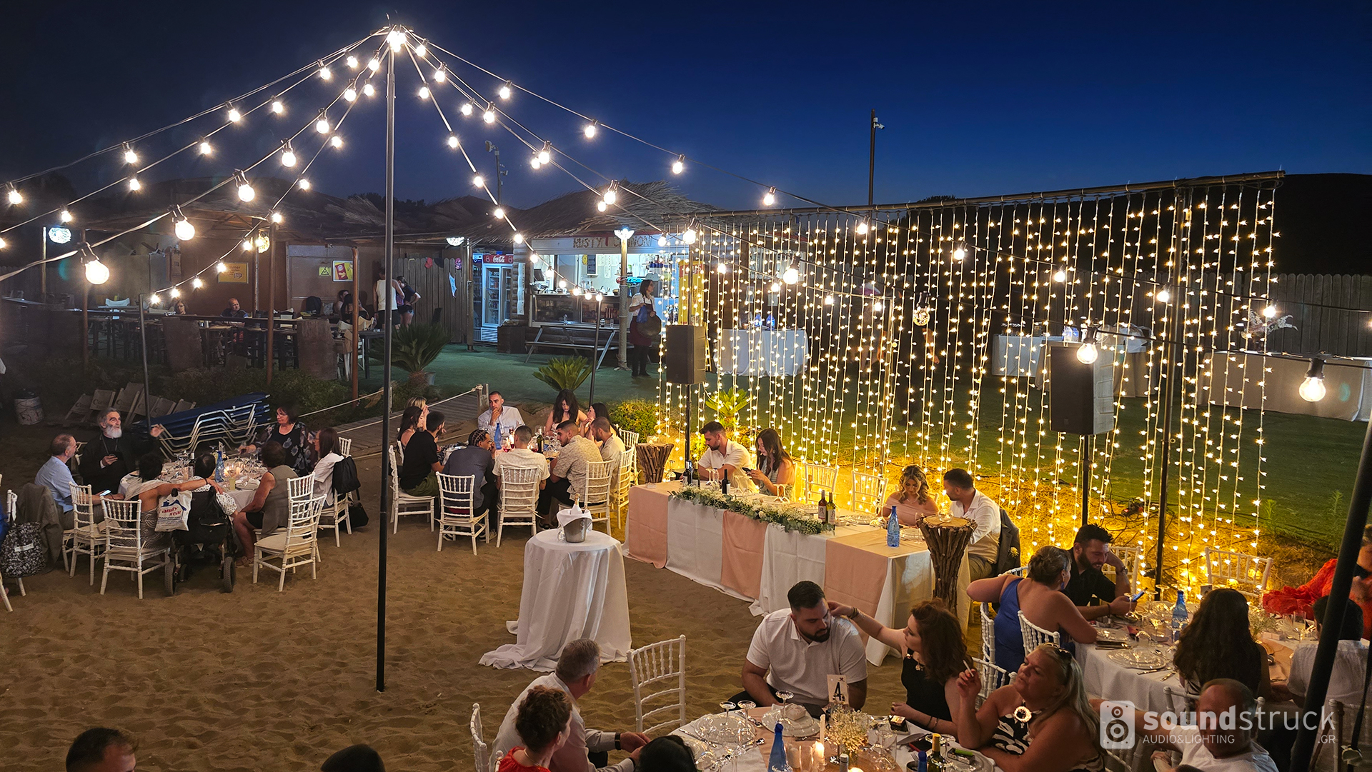 Επικοινωνήστε μαζί μας για να συζητήσουμε τις ανάγκες σας και να σχεδιάσουμε την ιδανική λύση φωτισμού για τη γαμήλια δεξίωσή σας με κουρτίνες από fairy lights.